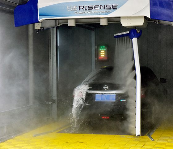 2019年日森自主研發生產的單擺臂洗車機,具備高壓清洗、水蠟鍍膜、拋光、風干等功能,是洗護一體的全自動智能無接觸洗車機。