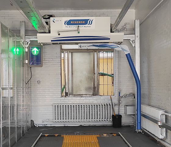 年日森自主研發生產的單擺臂洗車機,具備底盤清洗、車身預洗、免擦拭液清洗、高壓沖洗、亮光鍍膜、強力風干等功能,是洗護一體的全自動智能無接觸洗車機。